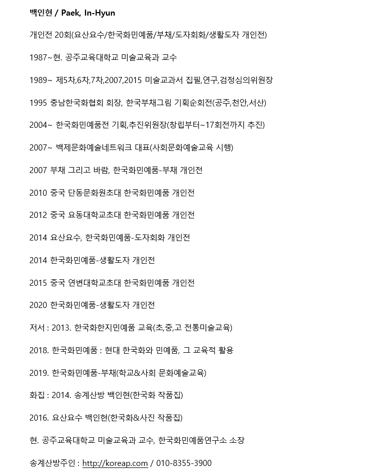 | <한국화민예품전- 생활도자>백인현 개인전 : 아트허브 (0) | 2021.01.21 |